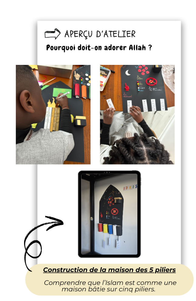 Cet accompagnement permet aux enfants d’intégrer progressivement les pratiques religieuses dans leur quotidien, en renforçant le lien parent-enfant et en créant un environnement propice à la transmission des valeurs de l’Islam.