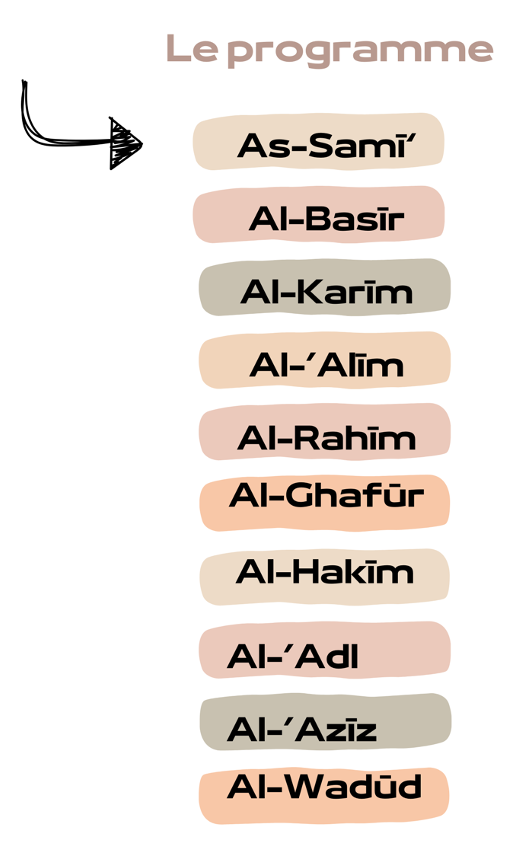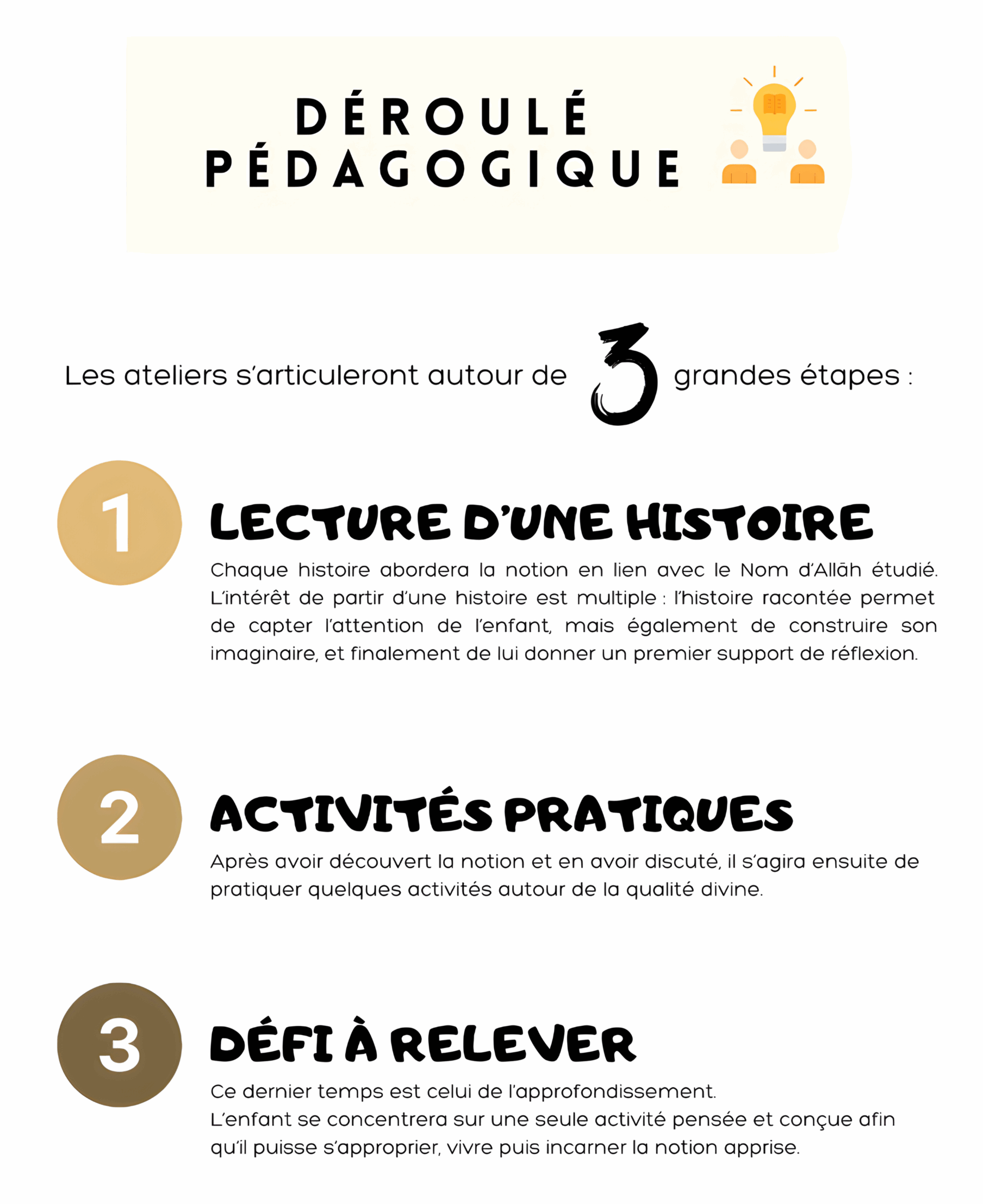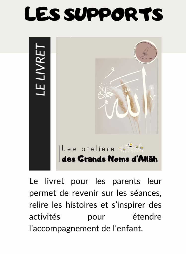 Dans le cadre du programme d’accompagnement A G N A, les Ateliers des Grands Noms d’Allah nous vous proposons des ateliers pour partir à la découverte des Sublimes Noms d’Allah.
