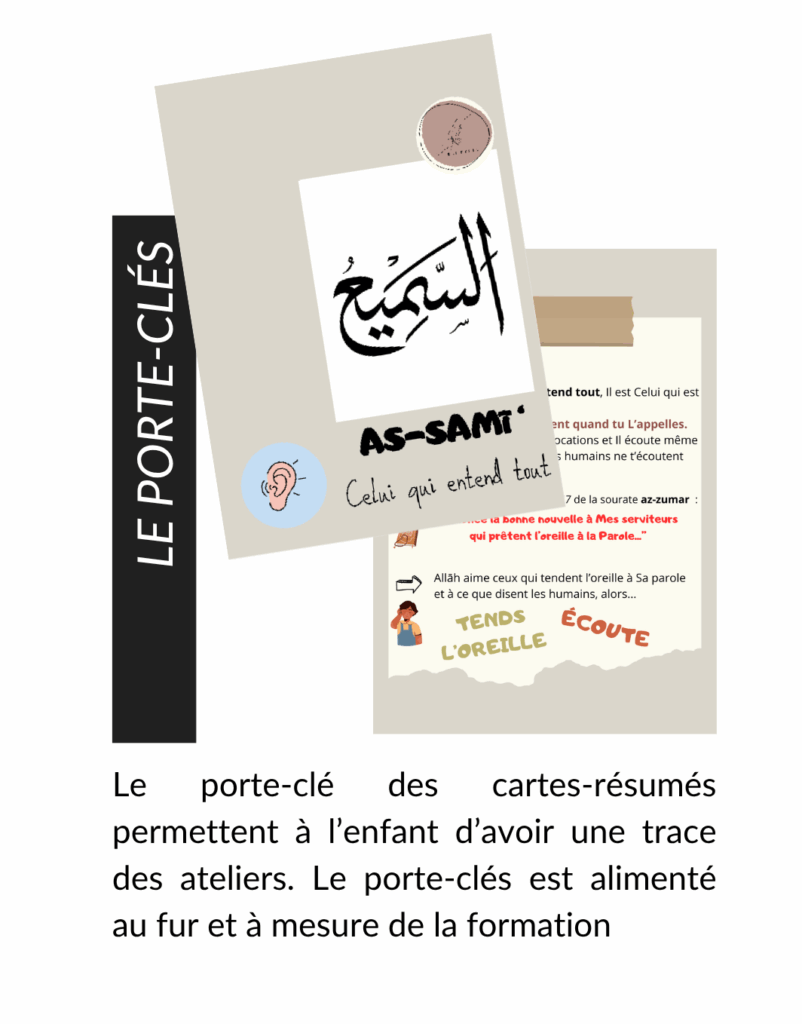 Il s’agira de développer la personnalité de votre enfant à partir des noms divins. Il en comprendra la signification au travers d’activités variées que nous avons conçues afin qu’il puisse mettre en pratique ces Noms en les expérimentant.